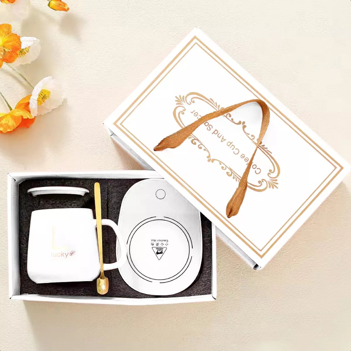 - Incluye: Caja regalo, taza, cuchara, calentador